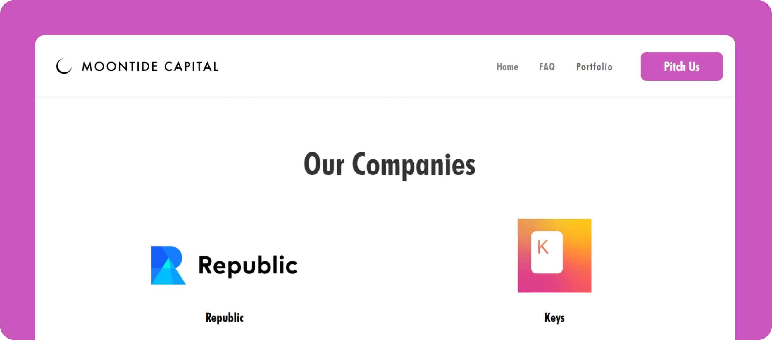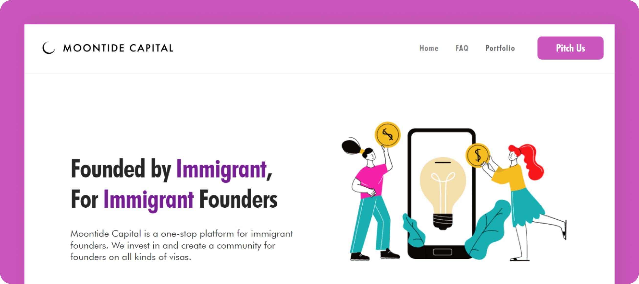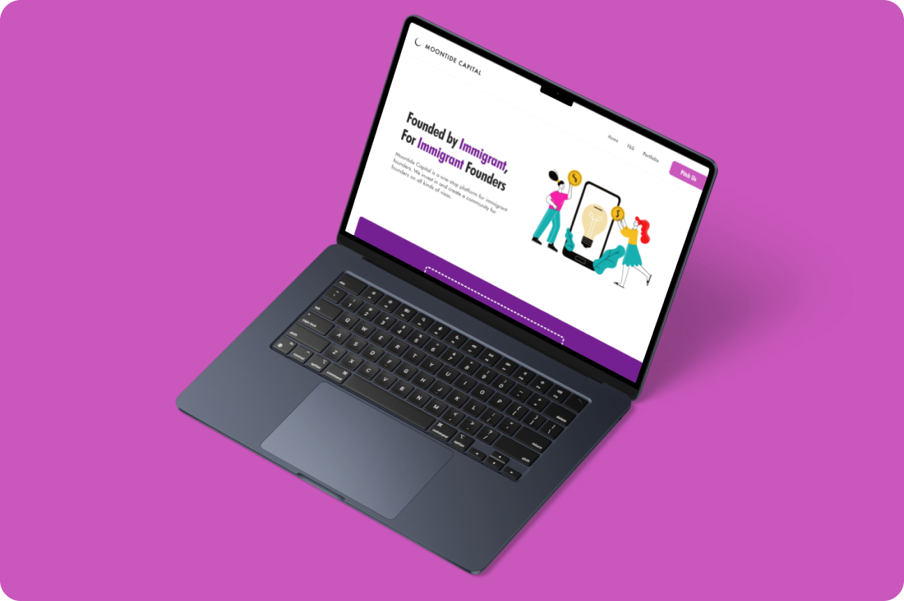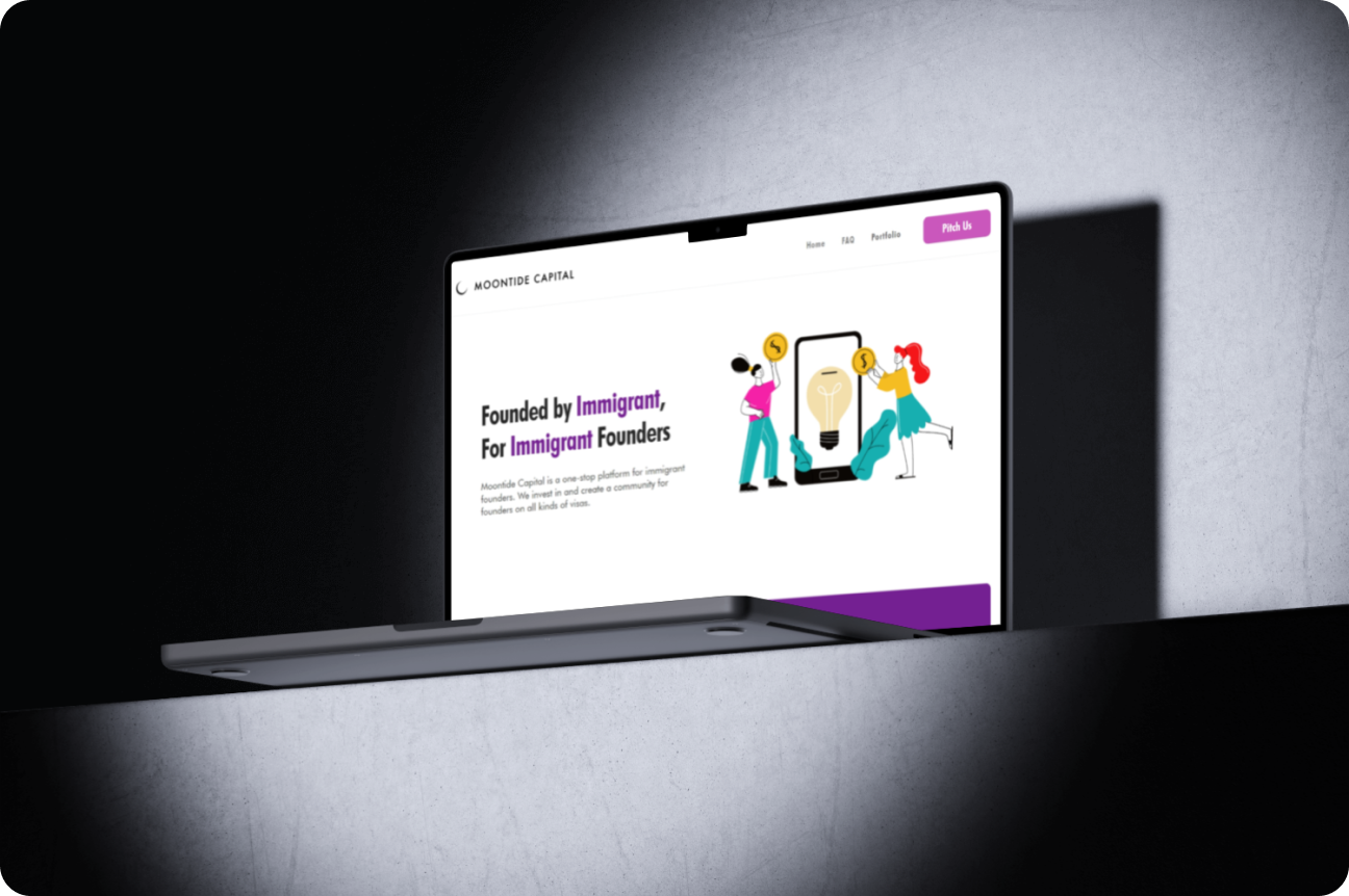 “The website clearly highlights Moontide Capital’s mission and support for immigrant founders, building trust and credibility. A few concise visuals or metrics could make the achievements even more compelling for clients...”